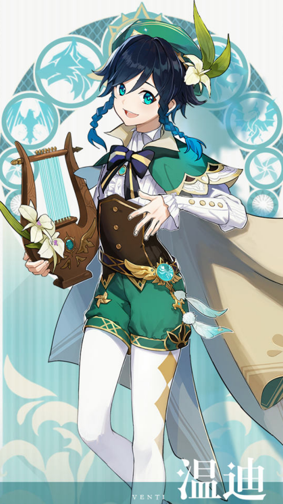 第三温迪,风神随便练练就好了,前期把加充能的*扔给他,一直放大招就行,后期推荐属性拉满(原神版神恩颂歌)