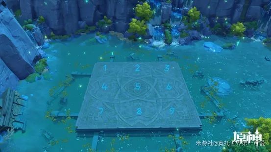 纯水精灵的主场如图所示,图中分为九个格,boss的所有机制都与此相关。
