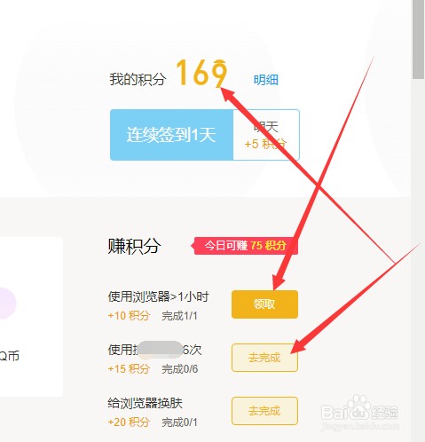 登录成功后我们可以在右边看到自己的积分,我们可以完成下面的任务获得积分,点击【去完成】就可以马上领取积分了