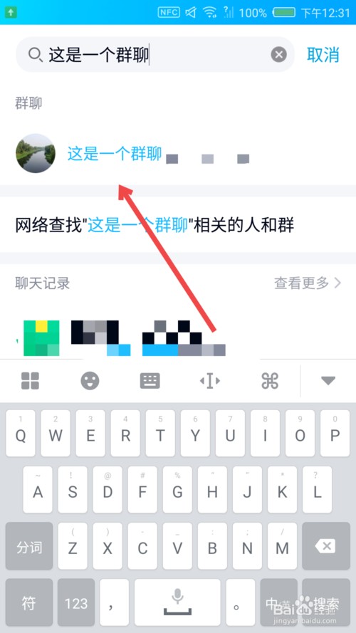 2、搜索并点击进入一个你已加入的群聊,点击界面右上角的三条横杠。