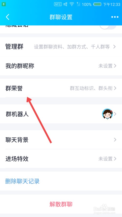 进入到“群聊设置”界面中,向下滑动界面,点击“群荣誉”。