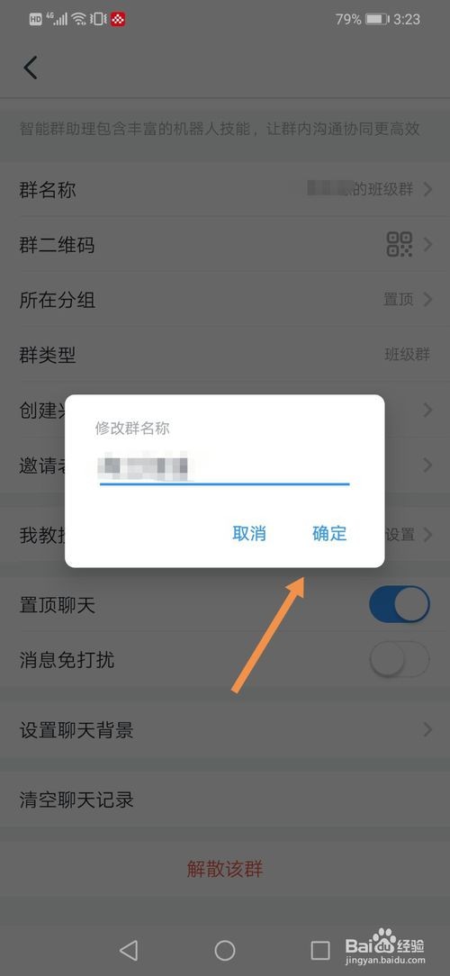 界面中会弹出“修改群名称”的窗口,设置一个你喜欢的群名称即可。