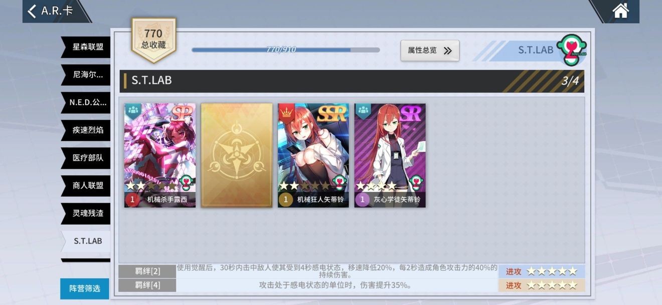 3.stlab部队,有几率使得敌人进入感电状态,降低其属性从而提升输出能力;