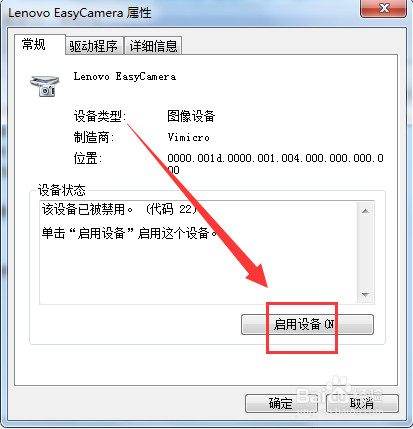 8.如果要再次启用摄像头的话,回到图像设备主窗口,单击【启用设备】按钮即可。