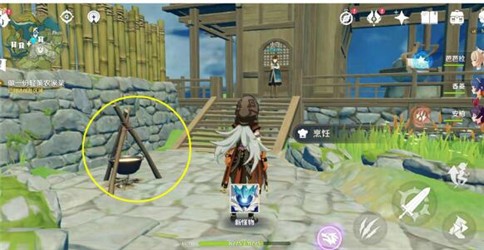 3、靠近与她对话,花费5000摩拉购买原神轻策农家菜菜谱,买完食谱之后,用安柏点火,即可在门口烹饪菜肴。