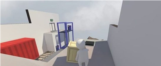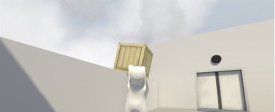 将视角抬高同时按下抓取键即可取下左侧高台上的木箱。