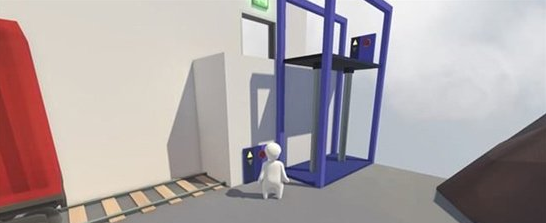 此场景内有一个人货梯,按下按键使货梯下降,将旁边的木箱拖至货梯上,按下货梯的开关将货梯升高。