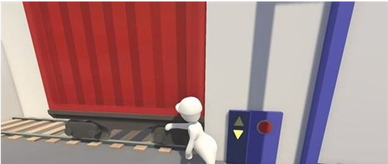 此场景内有一个木箱,一节车厢及一个人货梯。先将车厢拖至最右侧。