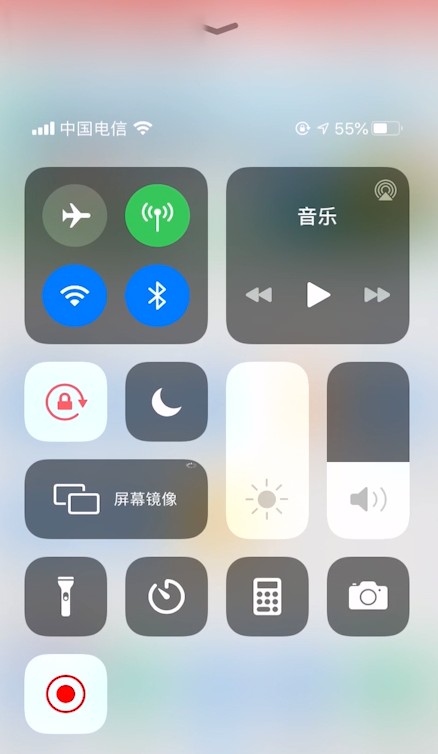 从屏幕底部向上滑,打开控制中心。