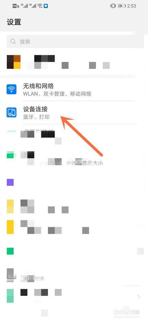 在设置界面点击“设备连接”或者最直接的,在搜索当中,搜索投屏。