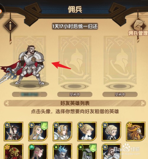 当好友批准后,即可租借到对方的英雄。租借后,在战斗中即可选择使用。