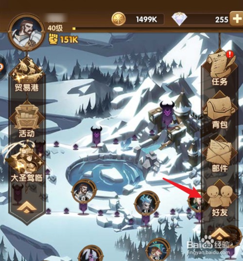 打开剑与远征游戏后,在主界面点击好友的图标进入。