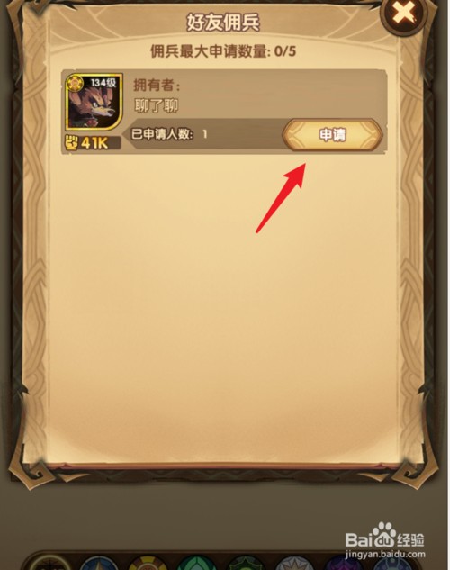 进入后,点击申请的选项,申请租借好友的英雄进行挑战。