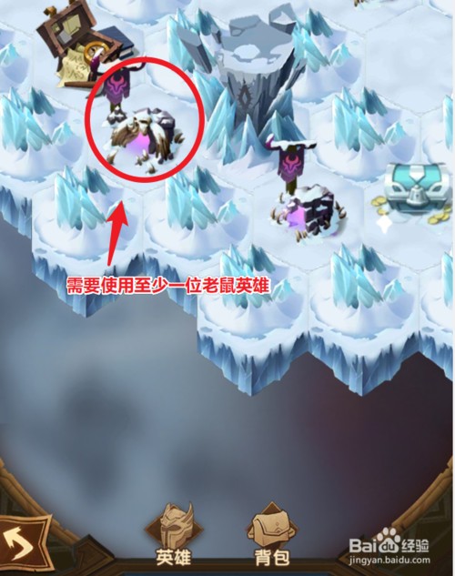 打开剑与远征的雪踪迷径进入后,在冰山前面的关卡,需要使用至少一名老鼠英雄,也就是诡诈猎手(沃尔克)和蛮角骑士(斯克雷格)才可以解除冰山的阻挡。如果没有老鼠英雄,则无法通过。